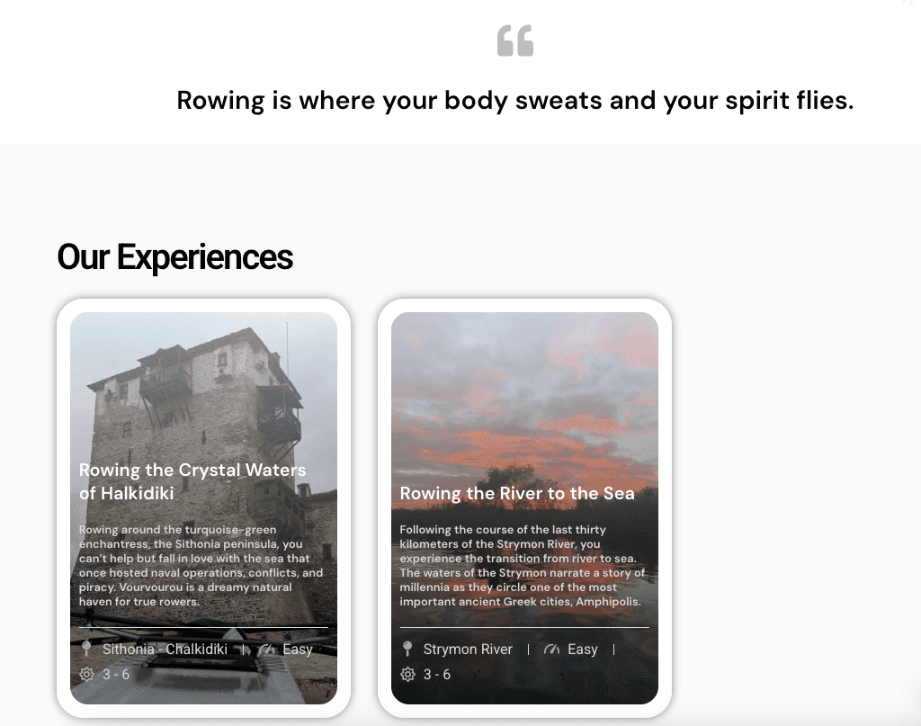 Oardyssey.com is a website dedicated to organizing and promoting rowing trips with rowing boats, combining sport, nature, and exploration. The main goal of the project was to create a clear and attractive platform where users can discover upcoming trips, learn details about each route, and easily join a rowing experience.